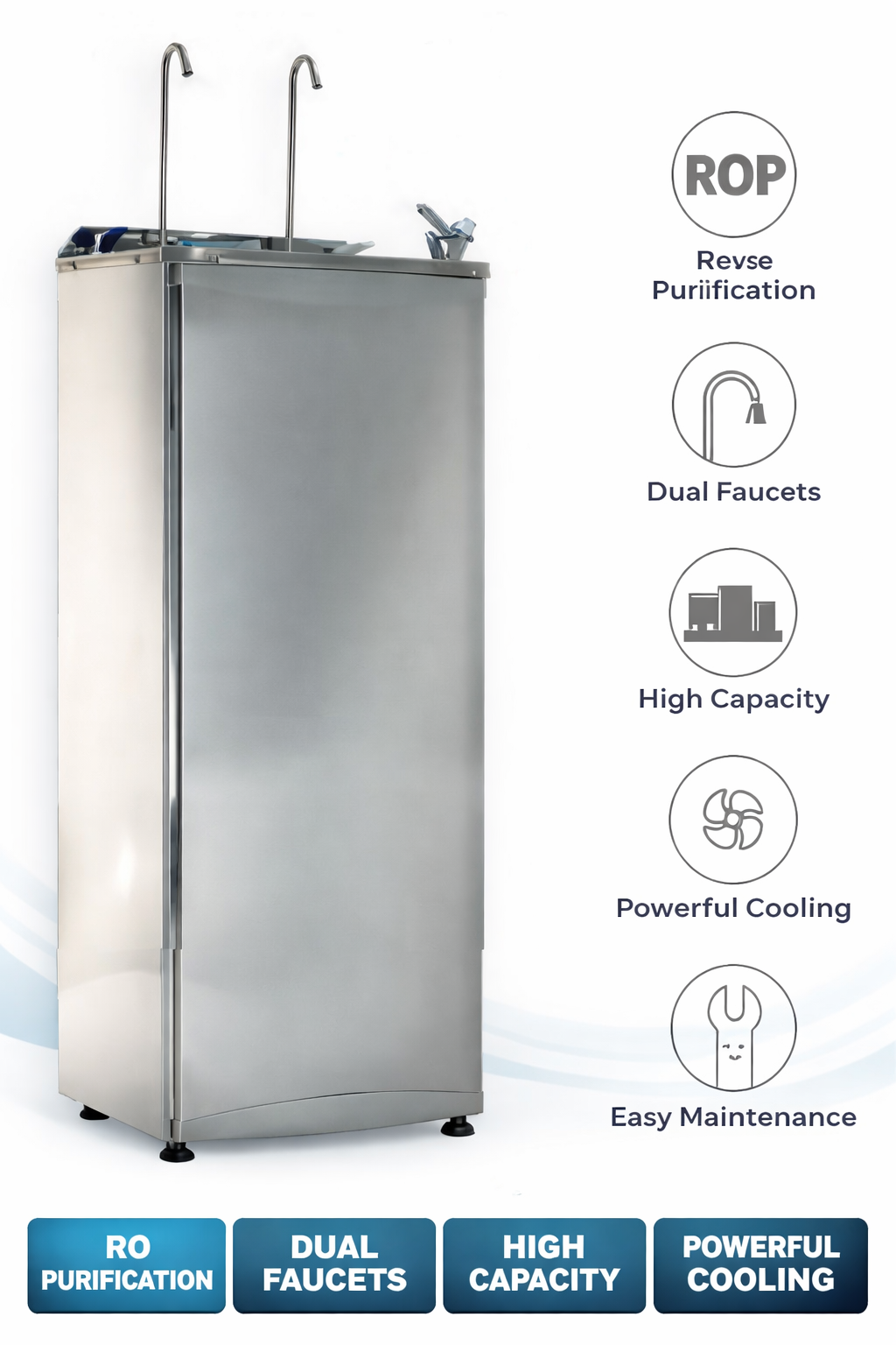 Sistema de filtragem por osmose inversa com electrobomba , garantindo água purificada de elevada qualidade.
