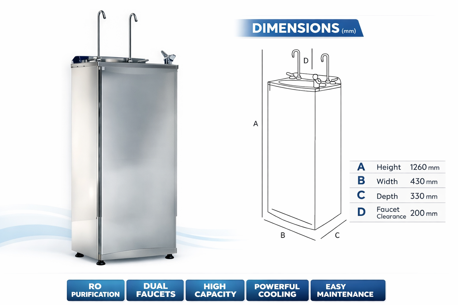 A x B x C x D: 1260 x 430 x 330 x 200 mm