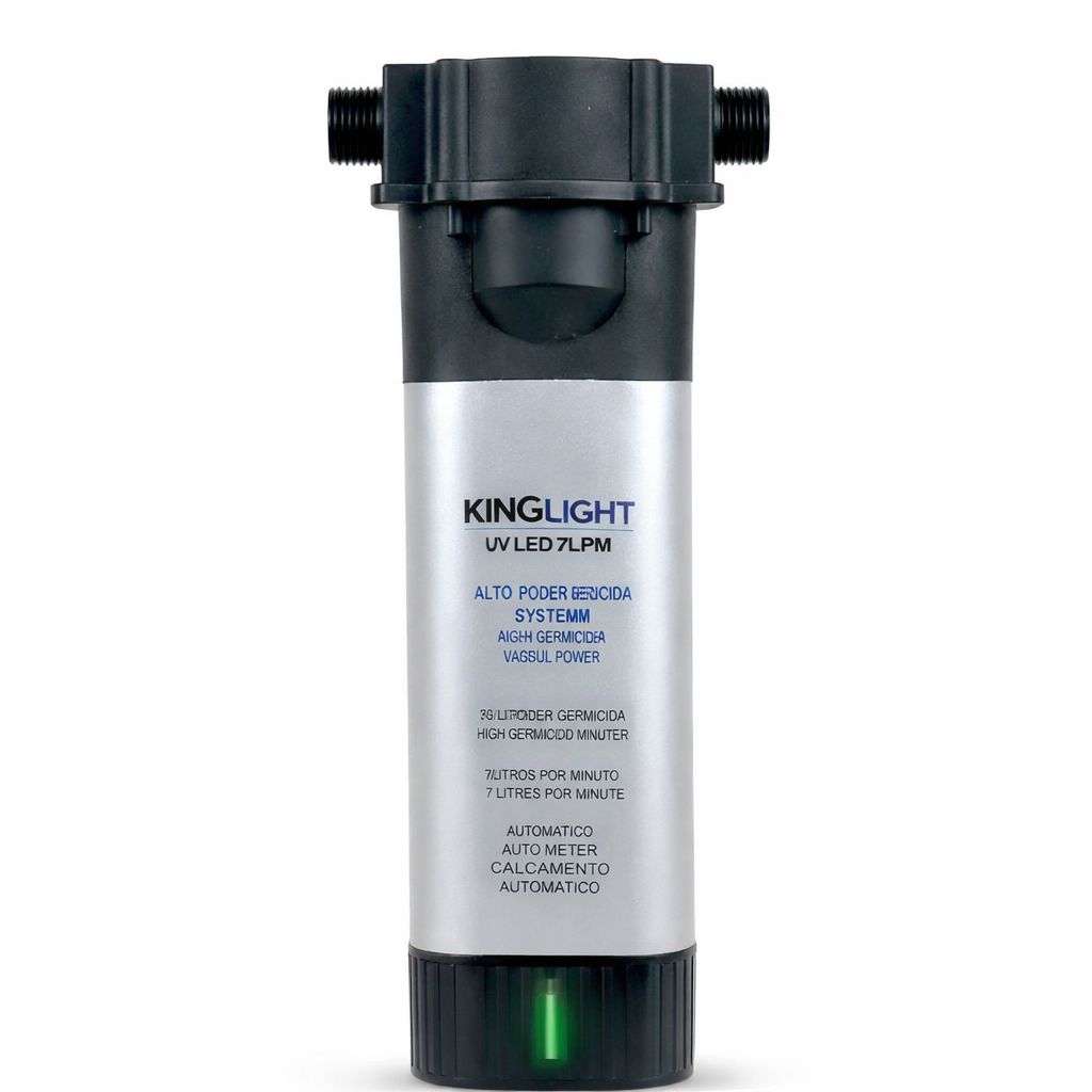 O KINGLIGHT UV LED 7 LPM é um sistema compacto de desinfeção por radiação UV-C, ideal para eliminação de germes e microrganismos da água osmotizada.
